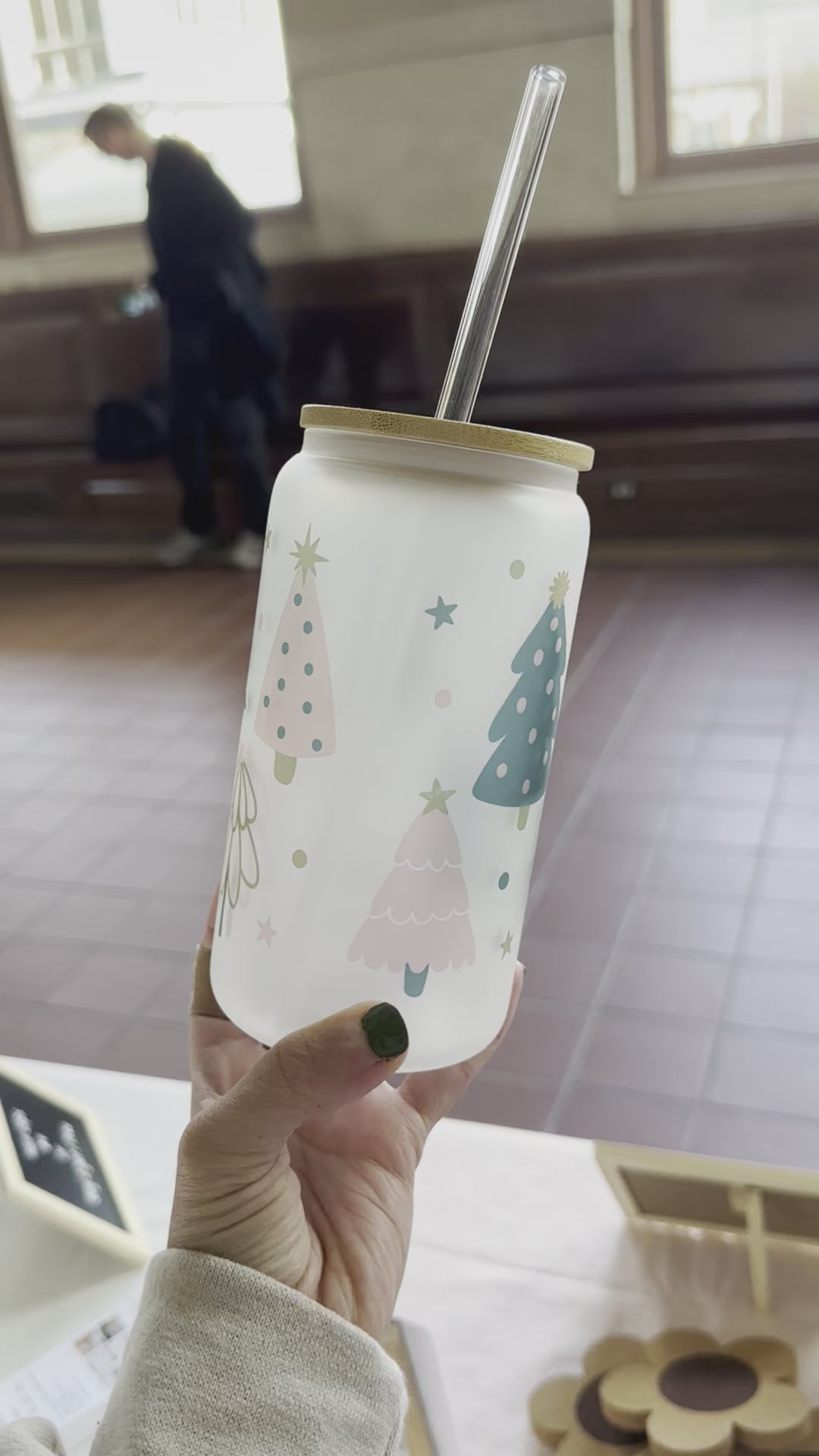 Glass cup hold 16oz. and make a great gift for yourself or a friend! Bamboo Lid and Clear Straw is included.
