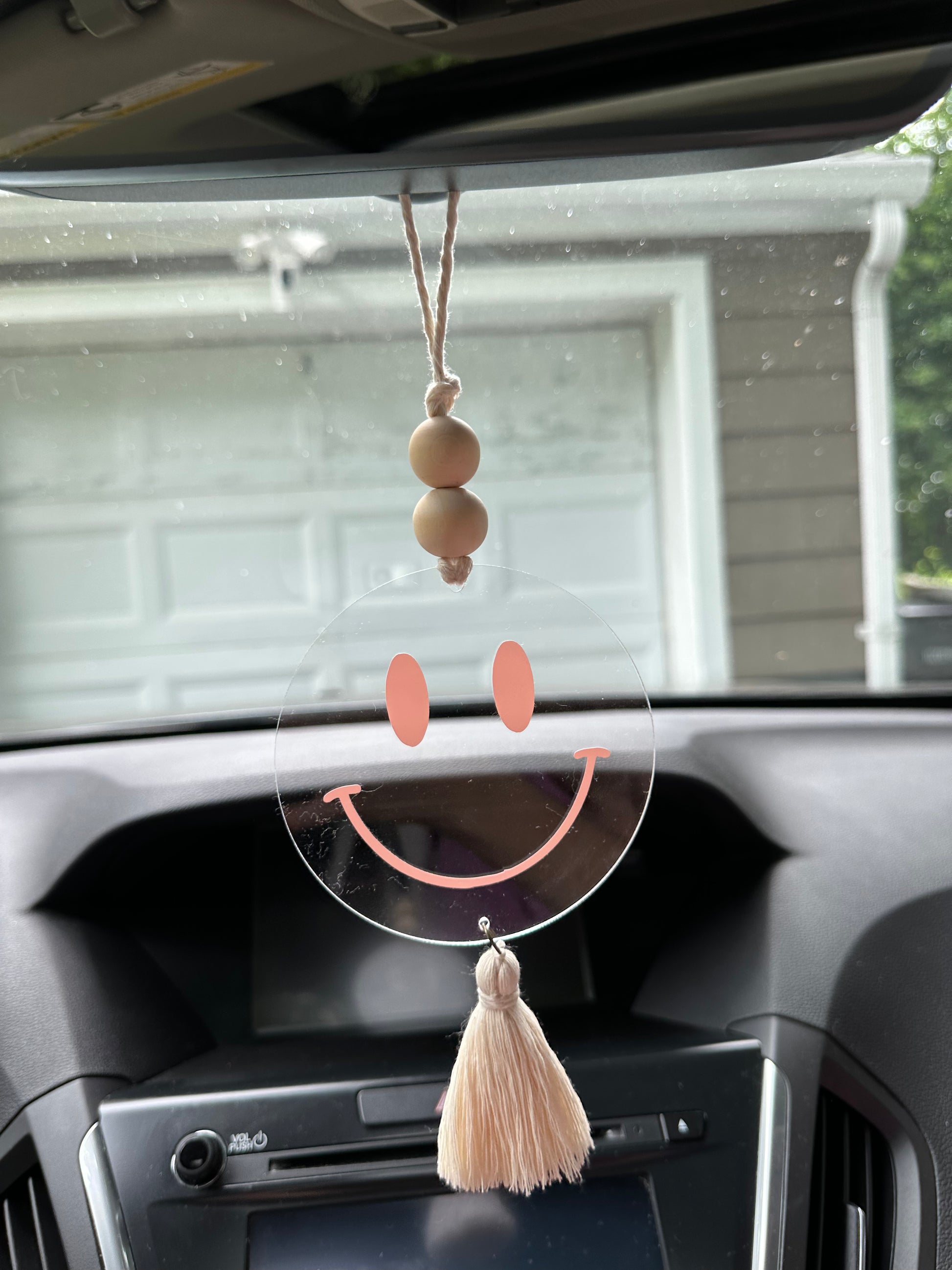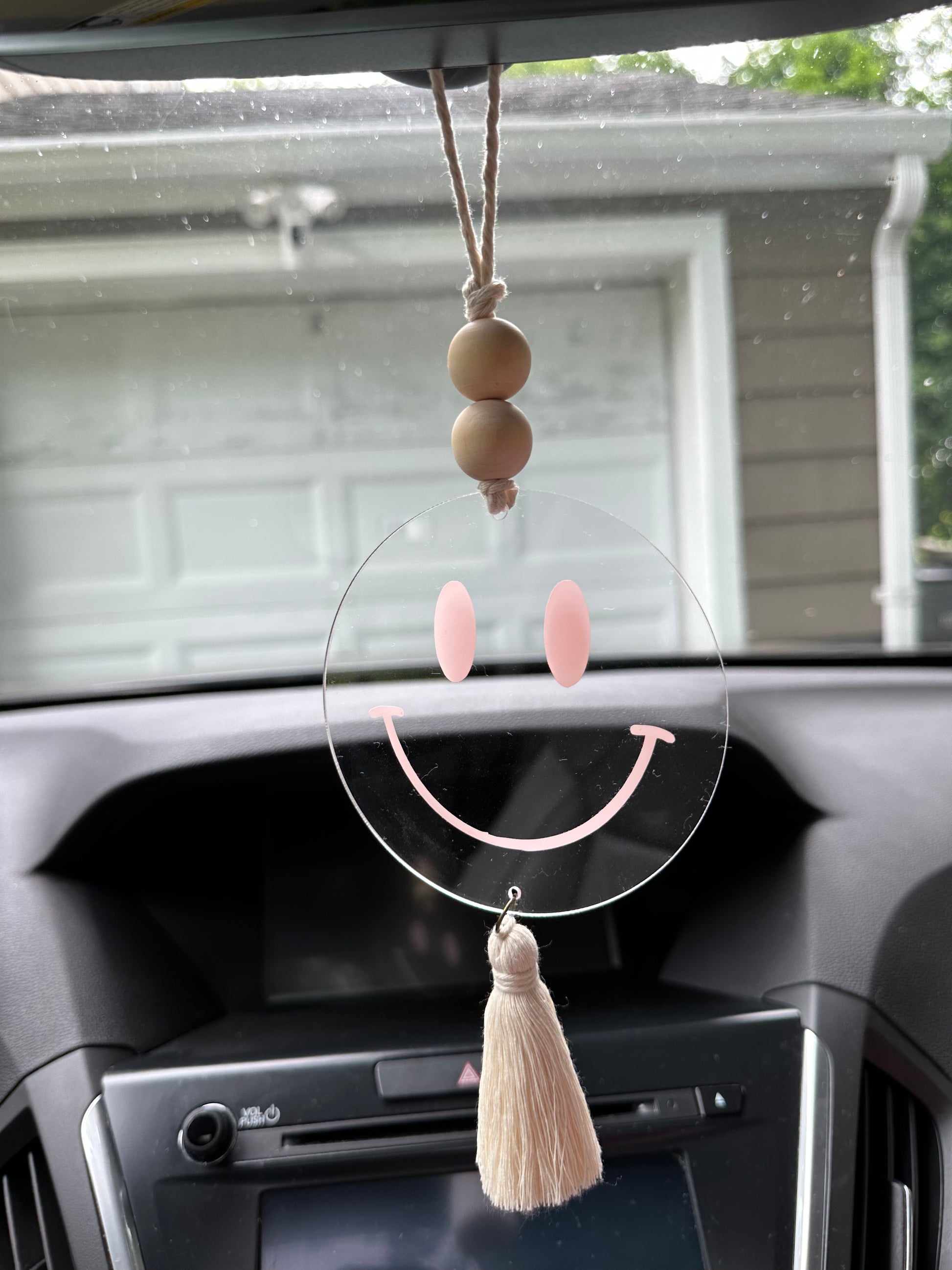 Add this cute 4 inch round acrylic charm to your rearview mirror or gift it to a loved one!